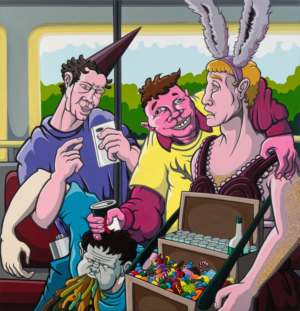 Junggesellenabschied, 2023, Acrylic on canvas, 150 x 145 cm