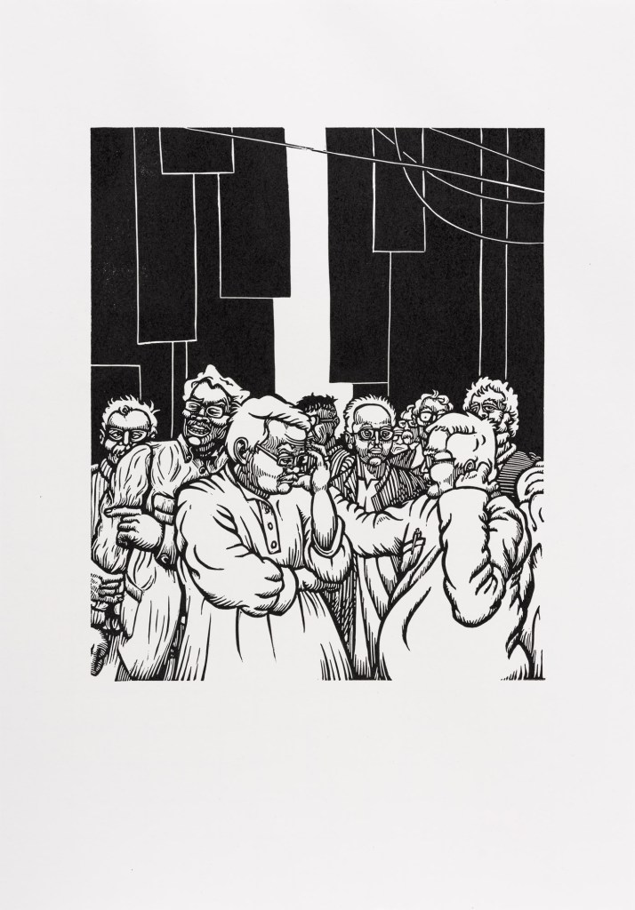 Social Distancing, 2020, Linocut, 30 x 25 cm